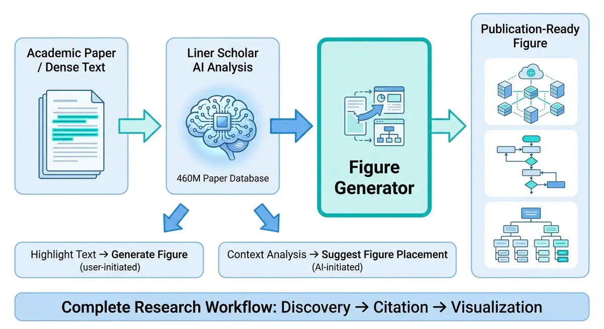 The feature lets researchers highlight a passage in an academic paper and ask Liner Chat to create a figure that explains it. It can also review a full paper and suggest where a figure may help readers better understand the material.